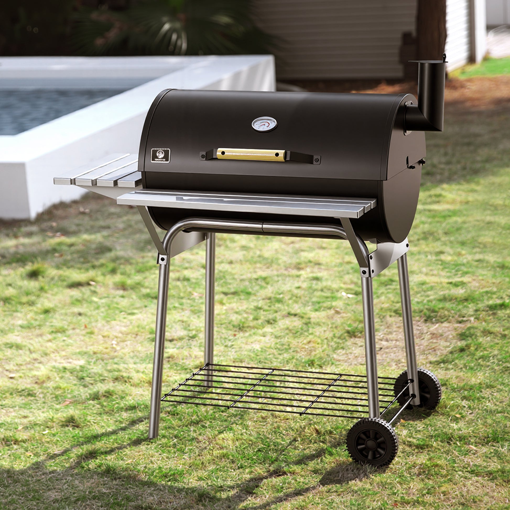 【Precision Heat Control & Smoky Flavor】Master the heat with 4 adjustable vents and a built-in thermometer on the lid. This barrel grill delivers precise temperature control and smoky flavor, perfect for any barbecue grill charcoal enthusiast